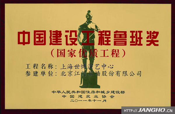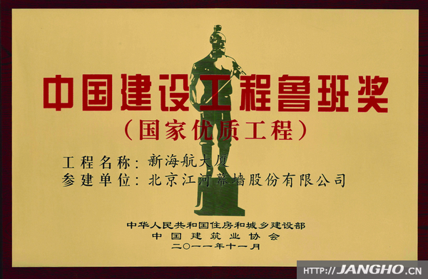 11月7日,2010—2011年度中國建設工程魯班獎(國家優質工程)頒獎大會在北京人民大會堂舉行隆重舉行。江河幕墻承建的“2010上海世博會最重要的永久性場館之一”上海世博演藝中心、“??诔鞘械貥私ㄖ?rdquo;海南新海航大廈、“2010夏季達沃斯論壇舉辦地”天津梅江會展中心憑借優異的工程品質喜摘魯班獎。在短短八年時間里,江河幕墻相繼榮膺建設工程魯班獎24項,充分展示了公司穩健快速發展進程中的雄厚綜合實力及品牌影響力。