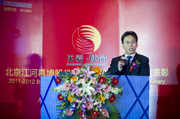 劉董事長表示,江河幕墻2011年的輝煌是全球江河人共同努力付出的成果。劉董事長在大會上對獲獎的團體和個人表達了熱烈祝賀,對全體江河人的辛勤付出鞠躬致謝并向全體家屬致以節日問候!