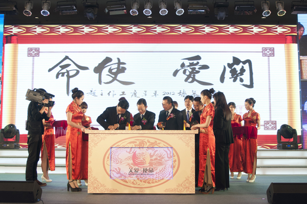 隨后,大會進行了年度主題“關愛·使命”的開啟儀式。在劉載望董事長的帶領下,各大區、職能系統領導將象征“承諾與攜手奮進”的個人印章壓印在書有“關愛·使命”的傳統卷軸上,融合各大區、各系統之力隆重開啟了2012年年度工作主題。新的年度主題,寓意著江河幕墻全員上下將攜手互信,共筑江河幕墻不斷卓越發展之路,并持續贏得客戶垂青,贏得投資者信賴,贏得社會贊譽。